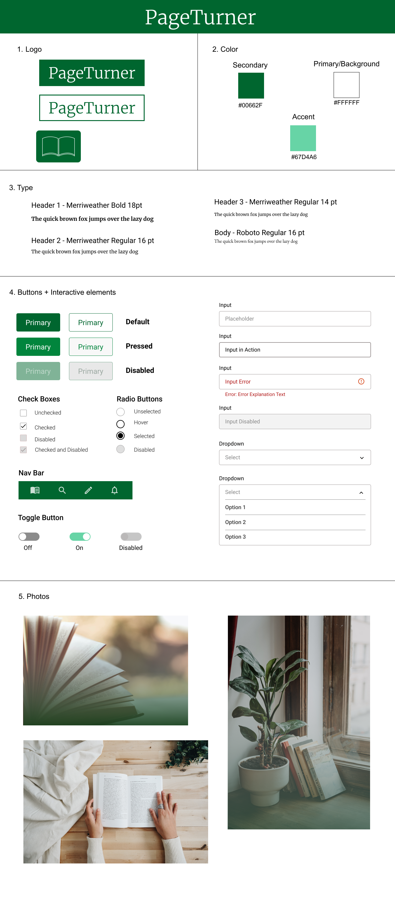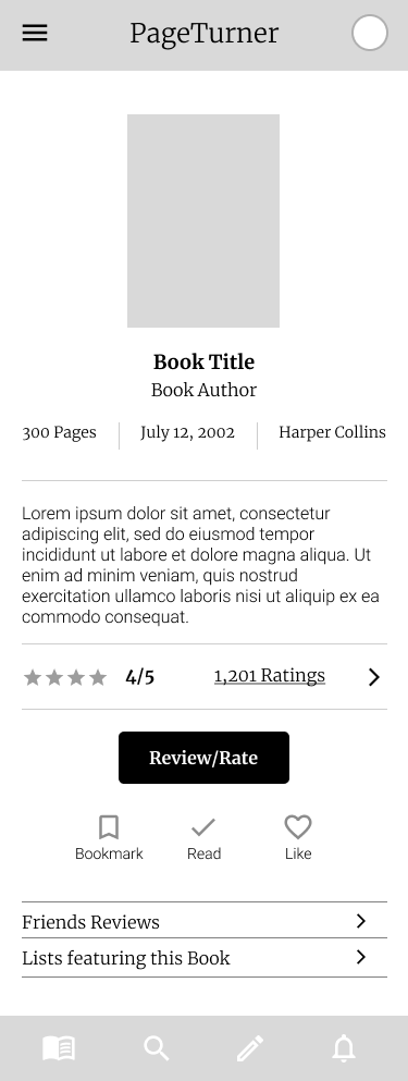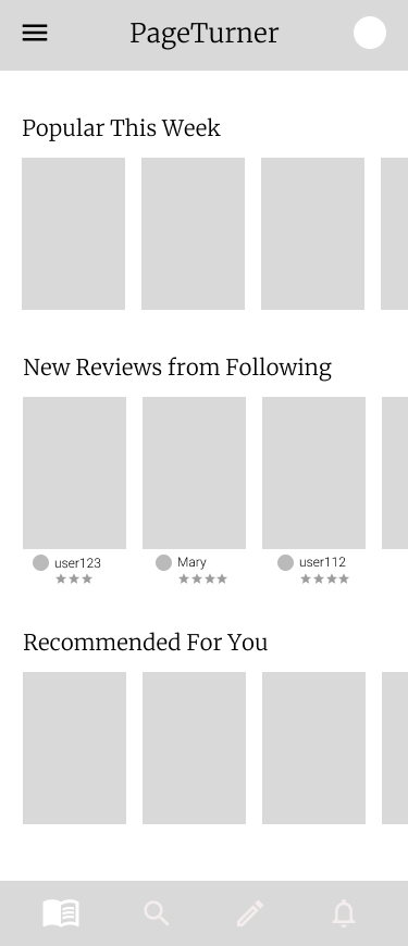 Branding was not a main focus for my PageTurner project, but I knew I wanted something to set apart my app mockup from current book review apps.